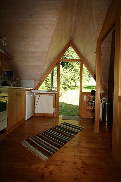 You live in a log house built in the 16th century within our large garden with old fruit trees. Former privatly used, we are renting it since 2013. On the ground floor you will find kitchen, living space, bathroom with toilet and upstairs in the attic there is the sleeping room. With all wooden furniture and a fire place you will enjoy natural living. This is the right place for a couple or two friends who try to escape from daily business and look for calm, peaceful place for vacation without disturbing telephone and internet. Enjoy reading a book within the nature of our garden.