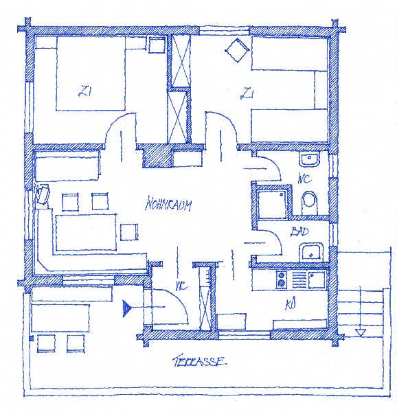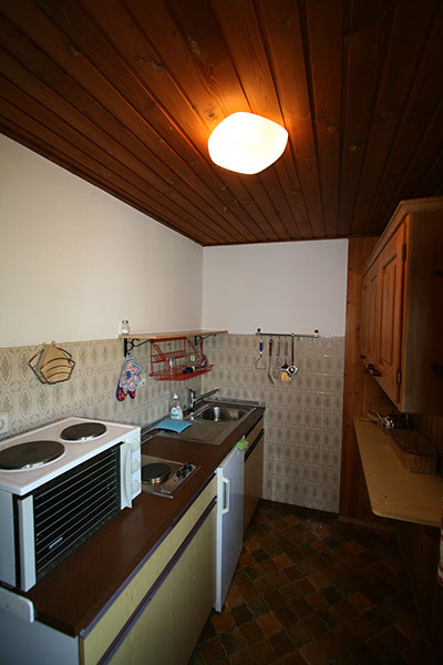 Sie bewohnen den oberen Teil des Holzblockhauses. Die rund 55 m² große Wohnung verfügt über einen eigenen Eingang, 2 Schlafzimmer, Wohnraum, Küche, Bad, WC, Satellitenfernsehen sowie Radio. Von der geschützten Sitzecke am Balkon haben Sie einen weiten Ausblick ins Gail- und Gitschtal.